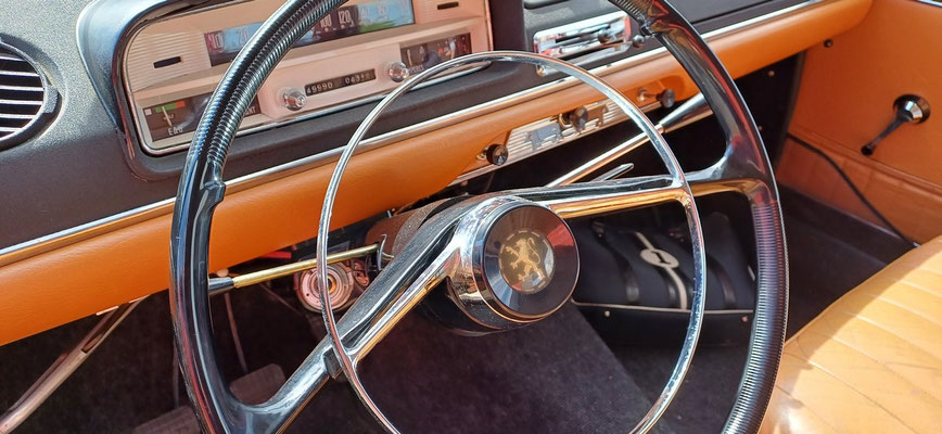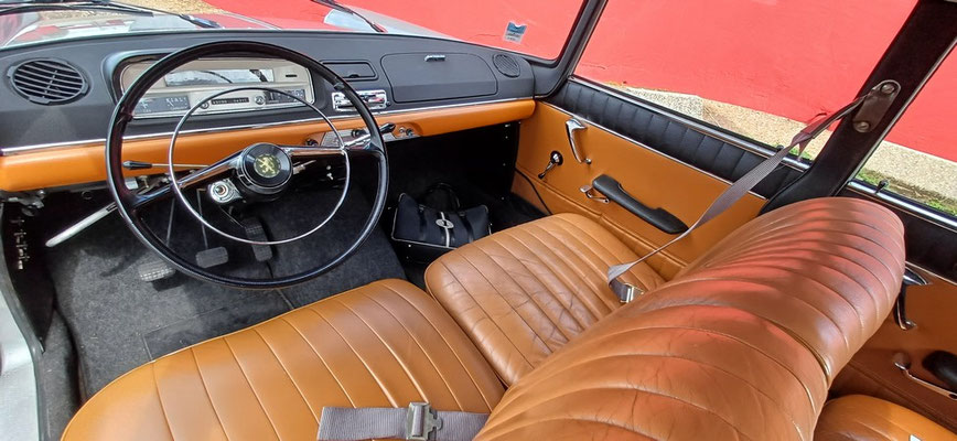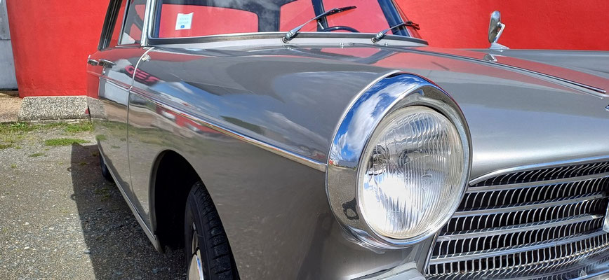 Mission de recherche pour l'un de nos clients. Nous avons trouvé cette jolie Peugeot 404 Super Luxe de teinte gris métallisée, dans une très belle combinaison intérieure en cuir Skai cognac.