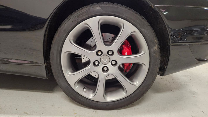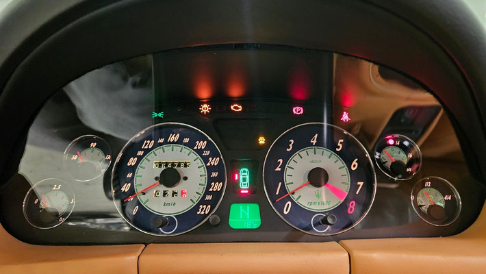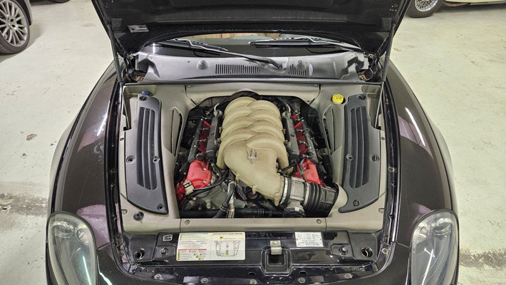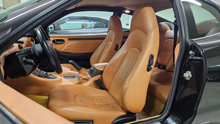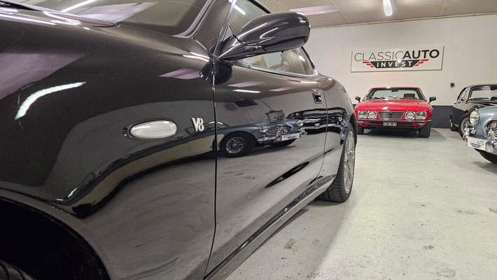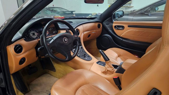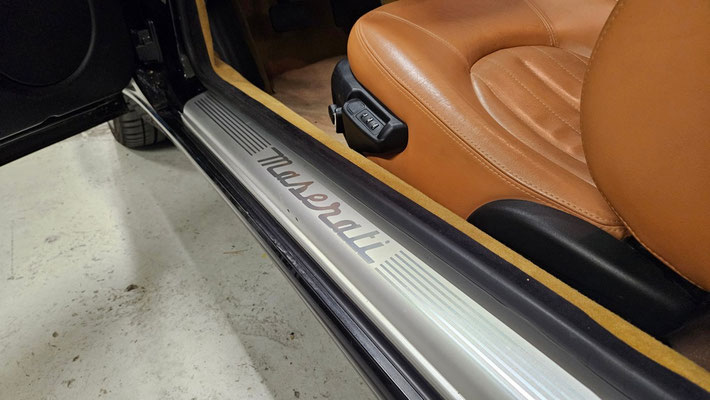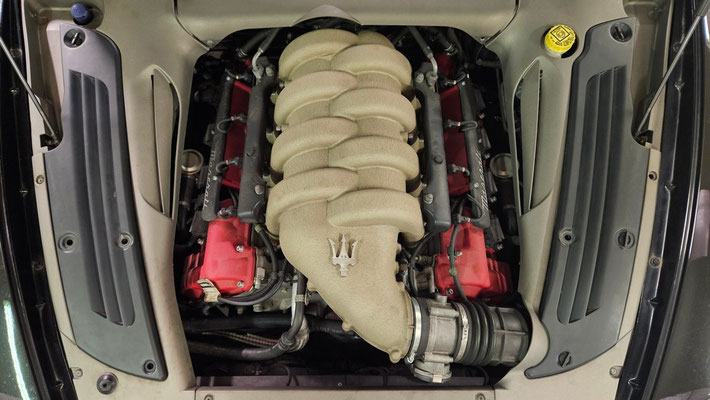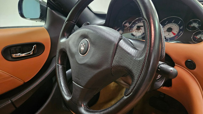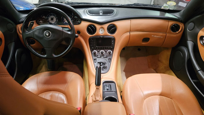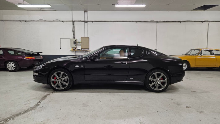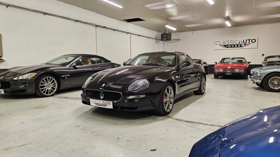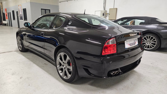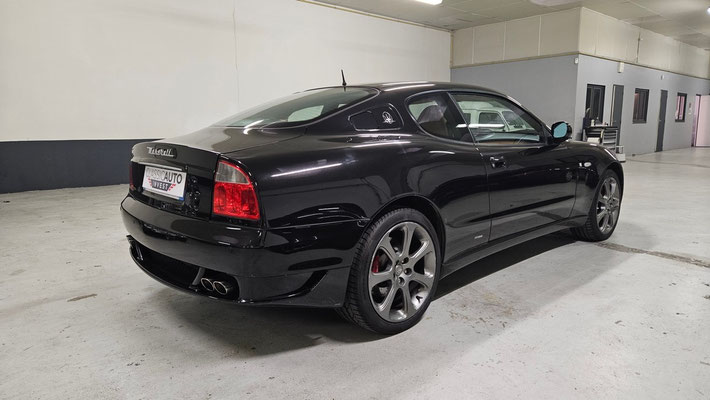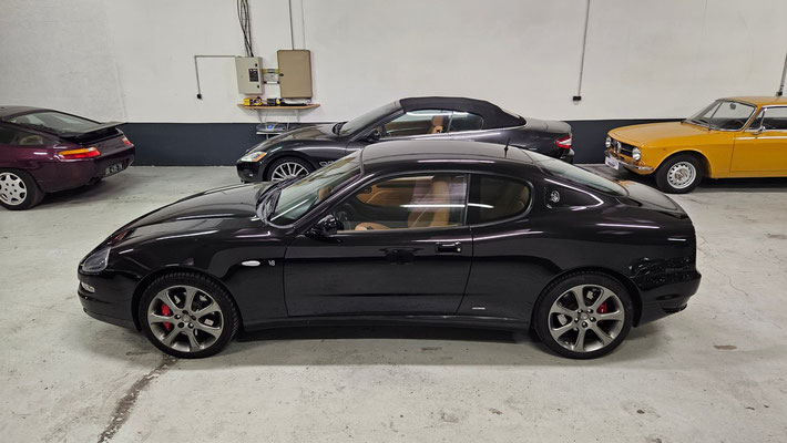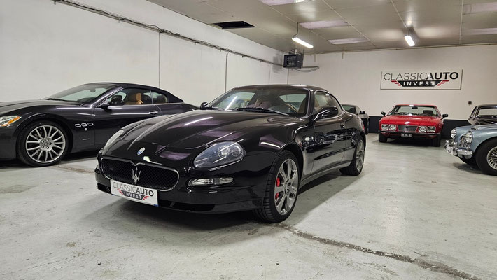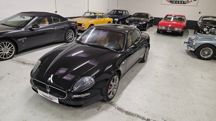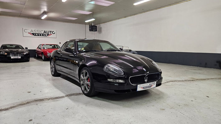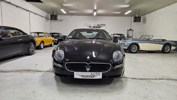 Maserati 4200 GT Cambiocorsa phase 2, présentée dans une très élégante combinaison Nero Carbonio avec intérieur en cuir Cuoio. Cette voiture affiche seulement 64 000 km !